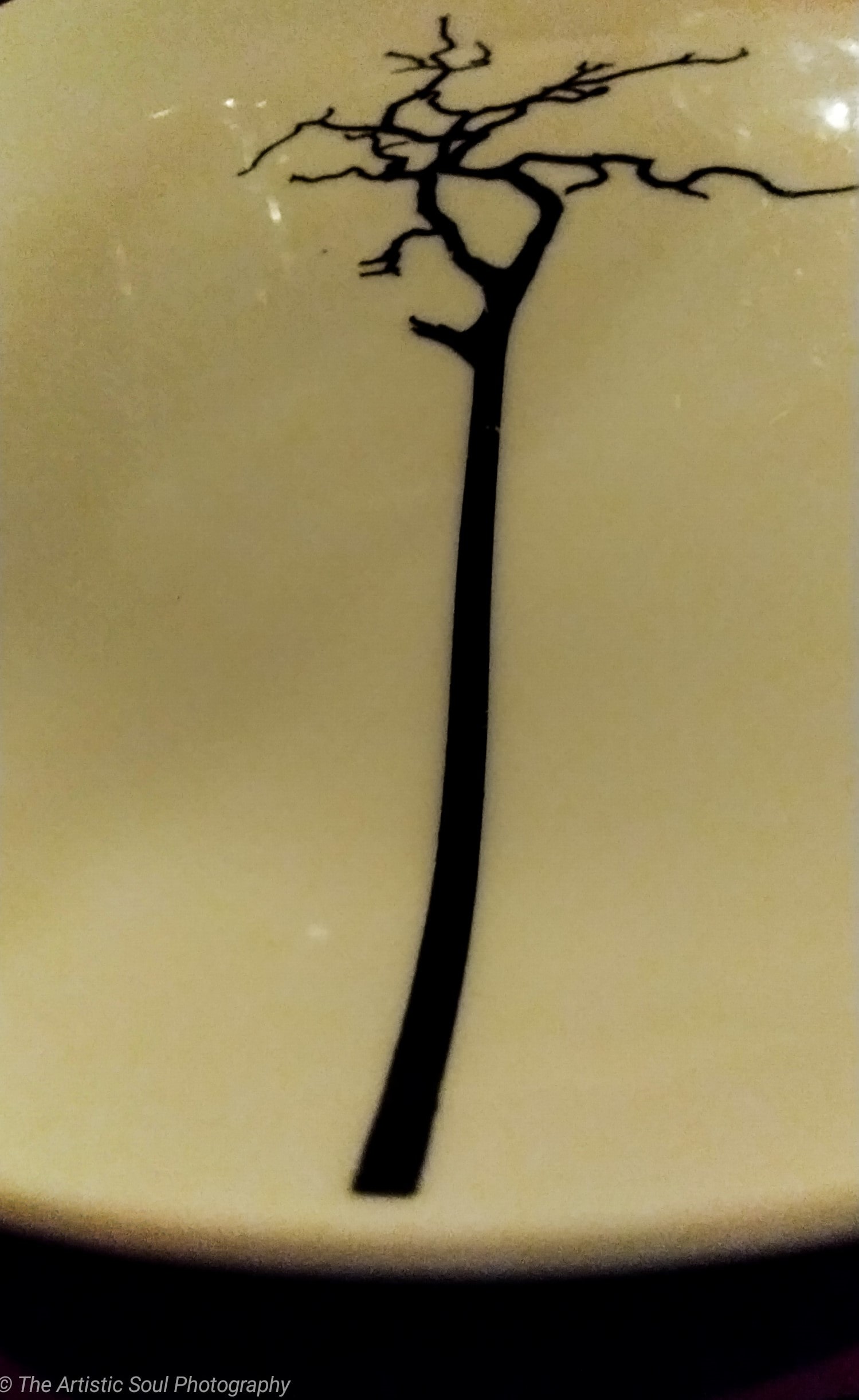 A crockery plate a lone tree